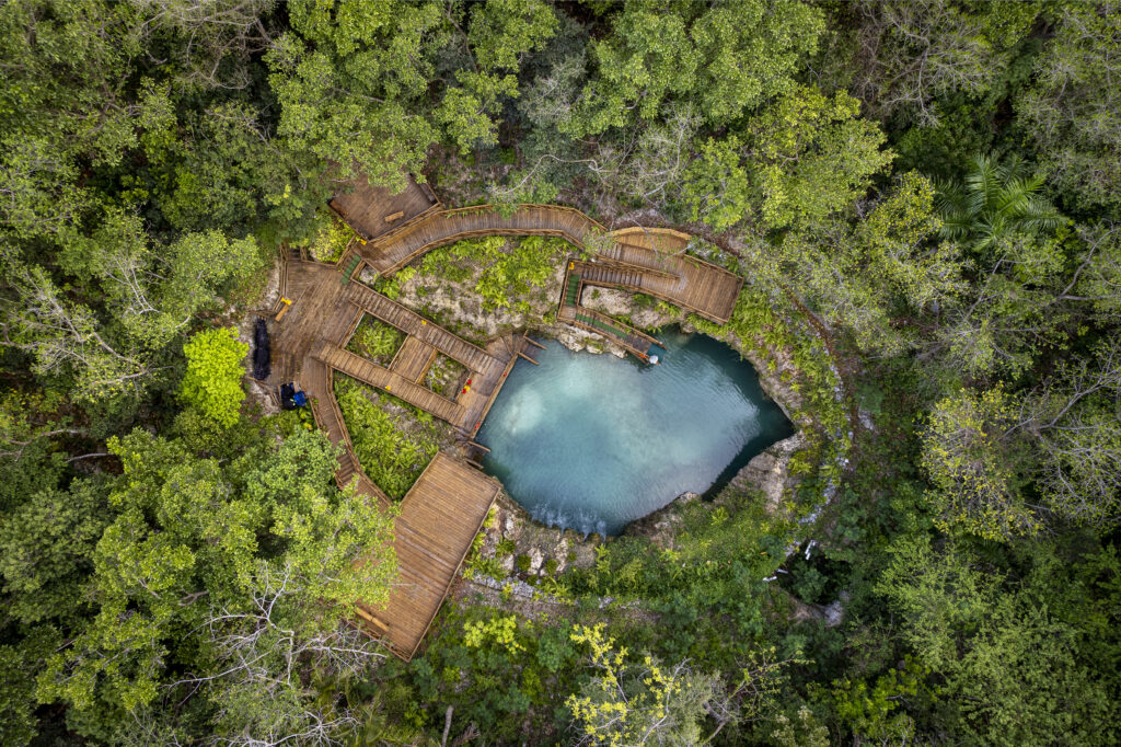 Los cenotes son un depósito natural de agua, generalmente subterráneo, que se encuentra en áreas de roca caliza. El relieve kárstico ha esculpido cavidades donde la lluvia se filtra y forma espejos turquesa. Hay pozas abiertas bañadas por el sol y cámaras subterráneas donde la temperatura baja y el sonido se vuelve profundo. La transición entre sombra y brillo define el carácter de cada parada.Dentro del mapa de cenotes en República Dominicana, Cap Cana concentra experiencias ideales para una jornada completa. Allí se encuentra el cenote de Scape Park, conocido como Blue Hole. El cambio de luz según la hora transforma el color y el ánimo, por eso conviene planear ventanas de mañana para capturar tonos intensos.
